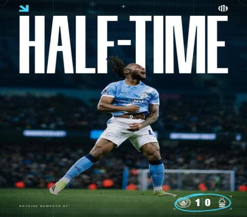 此役主場(chǎng)對(duì)陣諾丁漢森林,曼城憑借塞門(mén)約打入的進(jìn)球在上半場(chǎng)戰(zhàn)罷1-0領(lǐng)先對(duì)手。