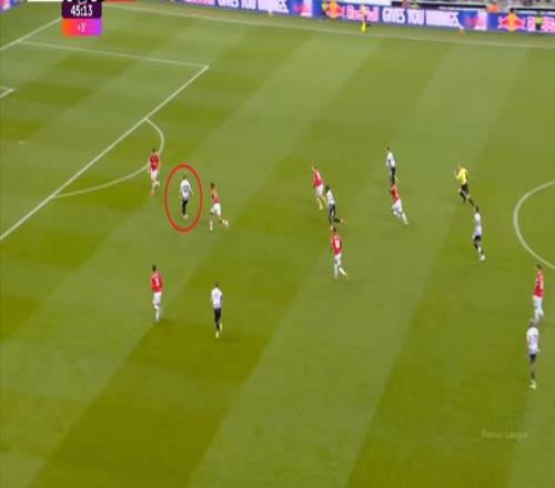 布魯諾和庫(kù)尼亞連接失敗,特里皮爾一腳傳球,讓替補(bǔ)登場(chǎng)的奧蘇拉完成提速、推進(jìn),直接來(lái)到進(jìn)攻位置: