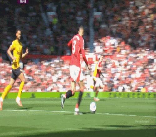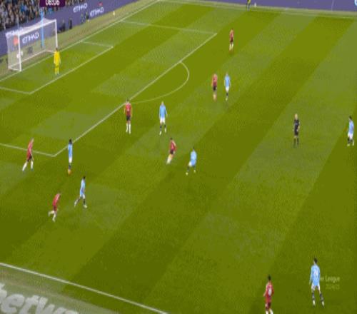 這可能是馬拉西亞的站位更多防范外線,給內(nèi)線留出空間的選擇的原因,但也正是因此,馬奎爾的移動(dòng)和站位剛好處于一個(gè)非常尷尬的位置,既沒(méi)有封堵住他的逆足射門(mén),也同步阻擋了拉門(mén)斯的視線: