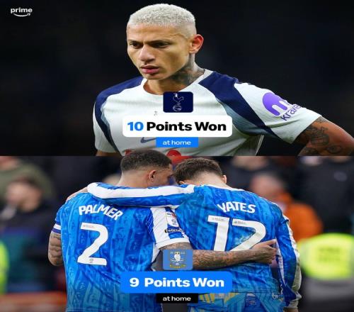 熱刺本賽季主場拿到10分,英格蘭前四級(jí)別92支球隊(duì)中僅多于謝周三