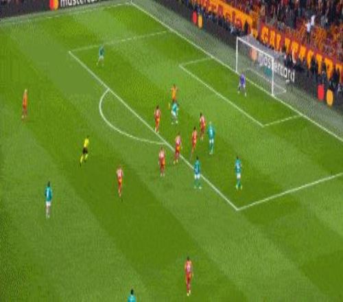 第7分鐘,薩拉開(kāi)出左路角球至禁區(qū)內(nèi),后點(diǎn)奧斯梅恩頭球擺渡到門(mén)前,勒米納頭球攻門(mén)頂進(jìn),加拉塔薩雷1-0領(lǐng)先。
