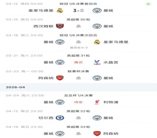 當(dāng)頭一棒!曼城魔鬼賽程首場03皇馬,未來6場戰(zhàn)皇馬槍手紅軍藍(lán)軍