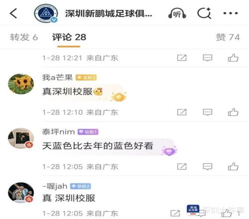 深圳校服作為全國(guó)知名的城市符號(hào),與俱樂部新賽季球衣的意外“撞衫”,這一巧合也讓深圳的足球文化以獨(dú)特的方式與城市記憶交融,形成獨(dú)一無二的藍(lán)色風(fēng)景線。