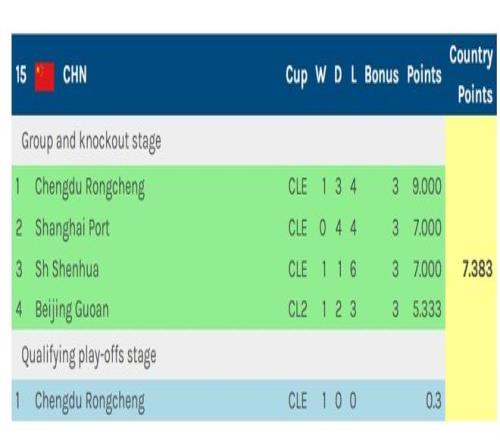 亞冠技術(shù)積分出爐,中超不及一眾東南亞聯(lián)賽球隊(duì)
