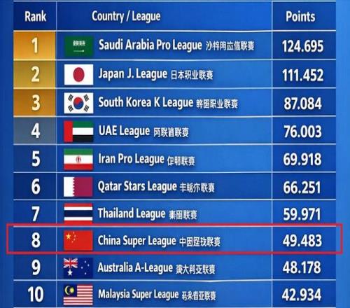 不久之前,亞冠精英聯(lián)賽階段,以及二級聯(lián)賽小組賽的結(jié)束,首階段各大足球協(xié)會(huì)的總積分也隨之出爐。