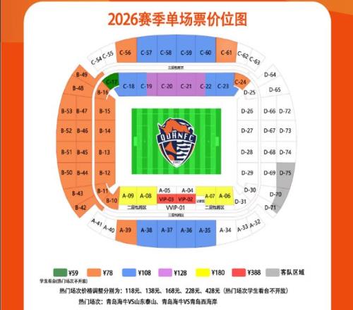 最低59!青島海牛發(fā)布新票務(wù),細(xì)分檔降價(jià)惠球迷,主場(chǎng)首秀對(duì)浙江