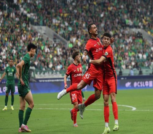 2025年9月21日,上海海港隊球員萊昂納多(右二)進球后慶祝。 當日,在北京工人體育場舉行的2025賽季中國足球超級聯(lián)賽第25輪比賽中,北京國安隊主場2比3不敵上海海港隊。 新華社記者 胡星宇 攝