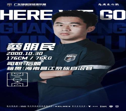 2月27日,中乙廣東銘途俱樂部官方宣布,球員蔡明民加盟。