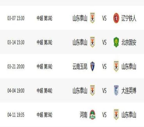 相比上海申花的天崩開局,山東泰山新賽季中超開局非常有利,前五輪“三主兩客”。3月7日中超首輪,山東泰山主場迎戰(zhàn)遼寧鐵人,3月14日中超第2輪,泰山隊(duì)繼續(xù)坐鎮(zhèn)主場迎戰(zhàn)北京國安,3月21日中超第3輪,泰山隊(duì)客場挑戰(zhàn)云南玉昆,4月4日第4輪,泰山隊(duì)主場迎戰(zhàn)大連英博,4月11日中超第5輪,泰山隊(duì)客場挑戰(zhàn)河南隊(duì)。