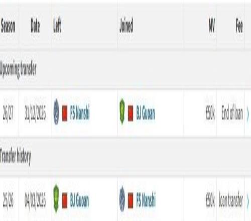 北京時(shí)間3月4日,德轉(zhuǎn)更新,北京國(guó)安19歲中場(chǎng)李睿躍租借加盟佛山南獅。