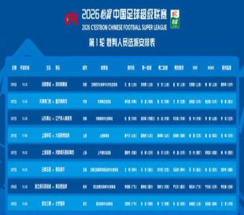 閃電體育3月6報(bào)道中足聯(lián)公布了中超聯(lián)賽首輪裁判執(zhí)法名單,山東泰山主場對陣遼寧鐵人的主裁判為張雷。