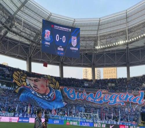 對(duì)陣大連英博賽前,申花主場(chǎng)打出巨型TIFO致敬于漢超