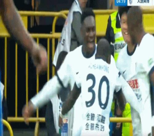 馬萊萊首次攻破申花球門,這是馬萊萊82場(chǎng)中超打入第34球,也是29次為大連英博出場(chǎng)打入的第9球。