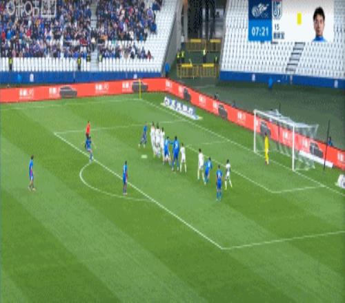 第44分鐘,高天意開出右側(cè)角球,新外援蓋伊門將搶點(diǎn)頭球破門,申花2-1反超英博了!