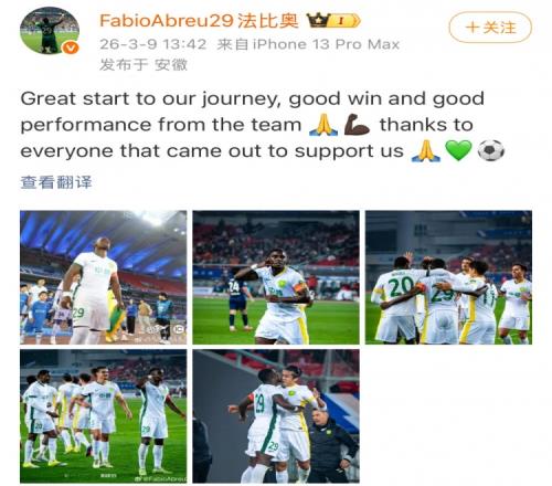 國(guó)安外援法比奧社媒慶祝勝利:新賽季起了好頭,球隊(duì)表現(xiàn)非常精彩