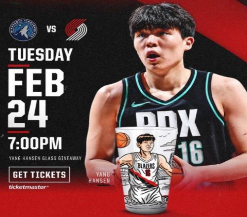 楊瀚森明日再戰(zhàn)G聯(lián)賽!開(kāi)拓者官宣兩大活動(dòng):送玻璃杯+售馬年球衣