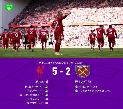 體壇周報全媒體原創(chuàng)今晨英超第28輪,利物浦主場5比2大勝西漢姆聯(lián),取得各線4連勝、英超3連勝。全場比賽,利物浦控...