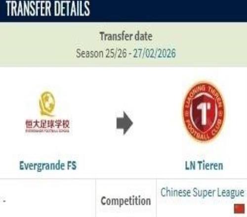 德轉(zhuǎn):遼寧鐵人約100萬(wàn)人民幣簽下恒大足校17歲后衛(wèi)張洪福